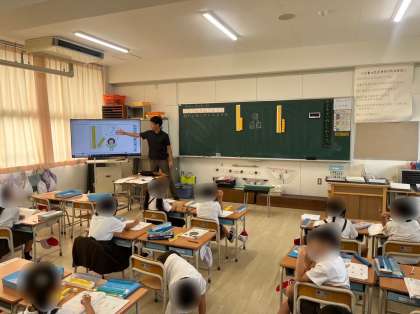 2年生は道徳の時間です。「みんな聞いて」というお話から、カラスアゲハの話がしたいゆめちゃんの話を聞いてくれたかなえちゃんの姿から、人の話を聞くときにどんなことを心がければよいか、学級で交流しました。