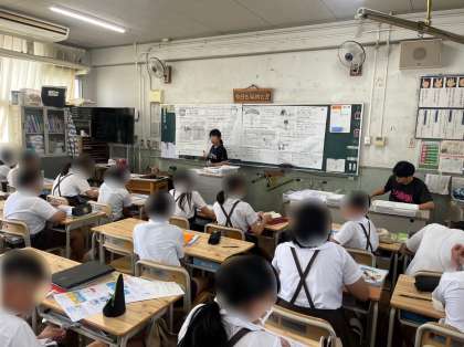 5年生は理科の学習です。「花から実へ」という学習単元のまとめに取り組みました。学習プリントを使って、どのように花から実へと植物がどのように生長していくのか、その過程を復習しました。