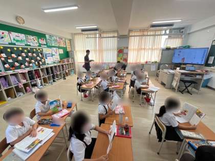 1年生は国語で「サラダでげんき」の学習をしています。いつものように音読をした後、登場人物がサラダに何を入れたのかを整理していきました。