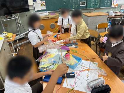 2年生は生活科の学習でおもちゃらんど開催に向けて準備を進めています。グループごとのおもちゃ作りも佳境を迎えています。子どもたちは、何度もテストを繰り返しながら制作していました。