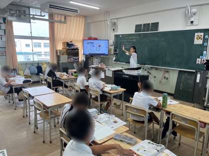 4年生は社会科の学習です。伝統ある天神祭りを受けついでいくためにどのような取り組みをしているかを調べました。また、調べたことを交流して、自分たちにできることを考えていきました。