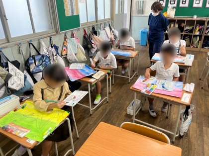 3年生は図工で「虫の世界」という作品作りに取り組んでいます。グラデーションになるように塗った画用紙に、植物を描き、更に色を塗っていきました。絵の具と水を上手く混ぜながら丁寧に塗ることができました。