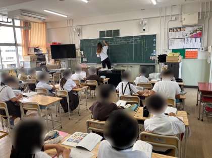 6年生は算数で面積の学習をしています。正方形の中に扇形が二つ描かれたアーモンドのような形の面積の求め方を考えました。子ども達は試行錯誤しながら問題に取り組んでいました。