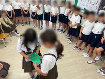 2年生が1年生を招待して、「おもちゃランド」を開催します。「おもちゃランド」では、2年生が生活科で作ったおもちゃで1年生に遊んでもらいます。今日は、1年生の子どもたちに招待状を渡しました。受け取った1年生は、嬉しそうに招待状を眺めていました。1年生の子どもたちも「おもちゃランド」を楽しみにしているようですね。