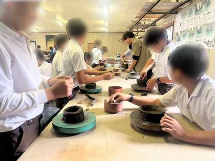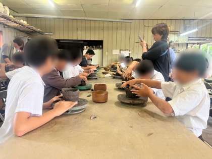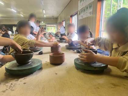 陶芸体験の様子です。形を整えるのは大変ですが、それも含めて自分だけのオリジナルですね。