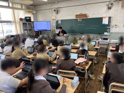 5年生は学級活動です。今月18日から始まる家庭学習力UP週間に向けて、自らの家庭学習を振り返りました。学習端末を使ってアンケートに答えながら、今後の家庭学習の目標を立てました。