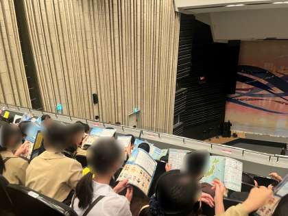6年生は、オリックス劇場にて、劇団四季による「ガンバの大冒険」という演劇を鑑賞します。昨日のスポーツ交歓会に続き、日頃なかなか体験できないイベントです。子どもたちは座席につき、劇が始まるのを楽しみにしています。