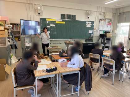 4年生は、学校内にある「ユニバーサルデザイン」をみんなで調べ、発表しました。「エレベーターのボタンの位置」や「ピクトグラム」など、身近な場所にあるユニバーサルデザインのよさについて考えました。