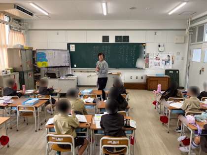 2年生は算数の学習でこれまで習った九九を暗唱に取り組んでいます。暗唱ができると先生の前で九九を唱えます。合格すると九九カードにスタンプをもらいました。