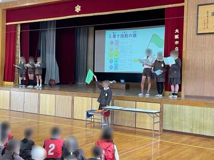 今週の児童集会は、衛生委員会の発表でした。衛生委員会の活動を紹介したり、感染症についての説明や校医先生へのインタビューで感染症予防の啓発をしたり、クイズを出題したりと盛りだくさんでした。