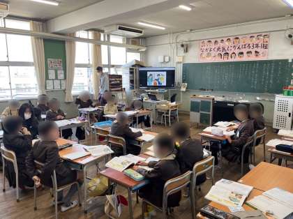 3年生は道徳の時間です。「れいぎ正しい人」というお話です。校長先生が話してくれた正しい言葉遣いができる人、お父さんと出会ったれいぎ正しい人との出来事を通して、礼儀正しい行いによって、相手、自分がどのような気持ちになるのか考えました。