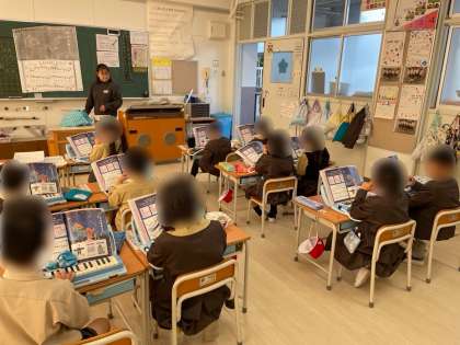 1年生は、音楽で鍵盤ハーモニカの学習でした。学習している曲は「きらきらぼし」です。曲を聴いて、自分が思い浮かべた様子にあうように、工夫して演奏しました。