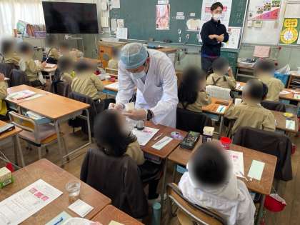 2年生は、校医先生に来ていただき、「歯磨き指導」を行いました。自分が思っている以上に磨き残しがあることに驚きつつ、磨き残しのない正しい歯磨きの方法を学びました。