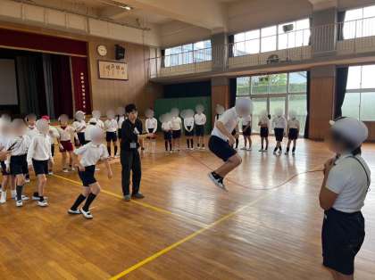 5年生は体育の学習です。今週、来週にかけて長なわチャレンジ週間です。学級のみんなと8の字跳びにチャレンジしました。さすが5年生、リズムよく跳ぶことができています。
