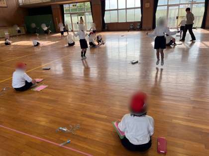 1年生は体育の学習でなわとびをしています。2人組になって両足跳び、片足跳び、あや跳び等練習しました。跳ぶ方だけでなく、見ている方も数を数える練習ができ、一挙両得です。