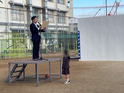 今朝は、児童朝会を行いました。校長先生からは、現状に満足してしまったり諦めてしまったりするのではなく、そこから自分を成長させるために、もう一歩頑張ってみよう、といったお話がありました。