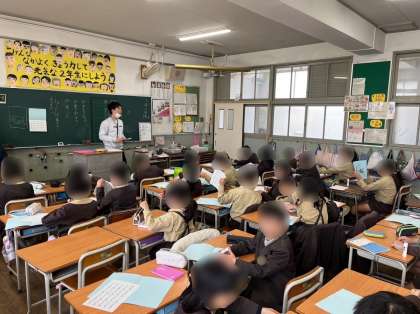 配付物を配ったり、持ってきたものを集めたりと大忙しです。このほか冬休みの思い出についても交流しました。