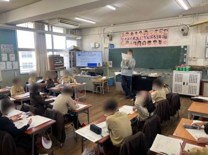 1年生は国語の「むかしばなしをたのしもう」を学習しています。授業では、色々な昔話の動画を視聴しています。今日は、「ゆきおんな」のお話を視聴しました。