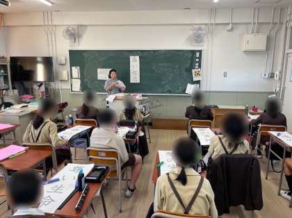 6年生は書写の学習です。2025年の書初めとなる今回は、いくつかの題字の中から子ども自身が選んで書きました。筆運びを意識ながら丁寧に力強く書きました。