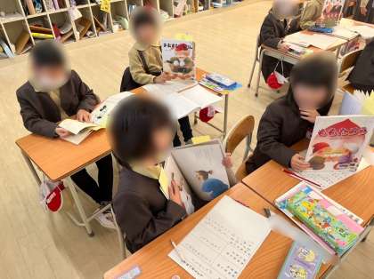 1年生は国語で「むかしばなしをたのしもう」の学習しています。今日は紹介したい昔話を紹介カードにおすすめするところをまとめていきました。