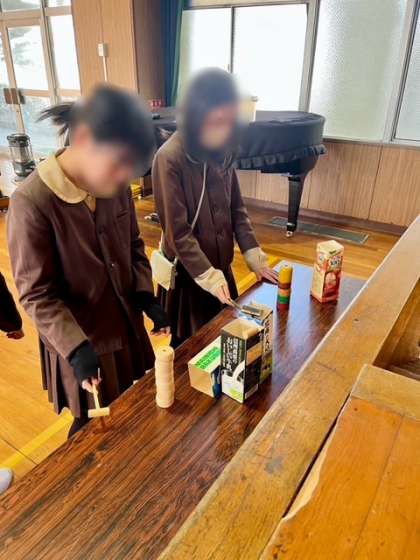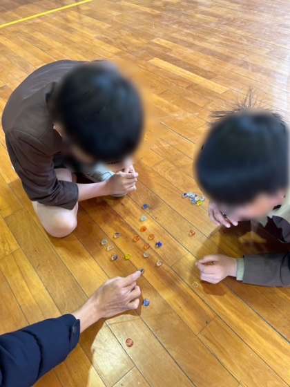 本日の2時間目はなかよしタイムです。なかよし学級の児童が集まり、こま回し、だるま落とし、羽子板などのお正月の昔遊びを体験しました。初めてする遊びもあり、緊張していましたが、時間が経つとすっかり遊び方がわかってきて、昔遊びに親しむことができました。