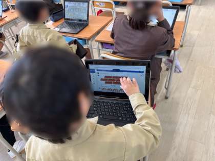 1年生は算数で「おおきいかず」の学習をしています。大きい数を10ずつまとめて数える練習をデジタルドリルを使って行いました。