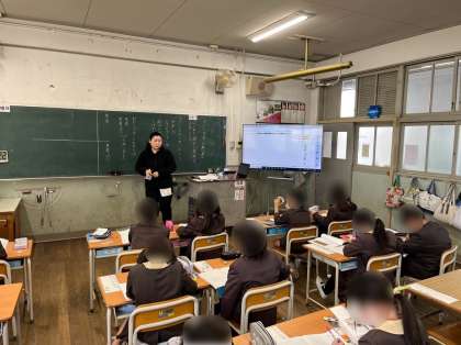 6年生は外国語の学習です。"自分の将来について英語で表現する練習をしました。"What do you want to be?”の質問について、将来なりたいものを英語で伝え合いました。