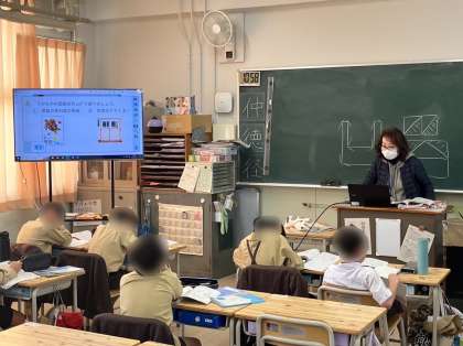 4年生は算数で「面積」の学習をしています。面積は平方センチメートルや平方メートルで表しますが、平方メートルを平方センチメートルに変換するにはどうすればよいかを考えました。