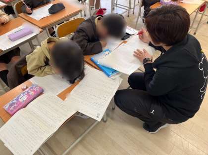 2年生は算数で「1000をこえる数」について学習しています。位取り表と数字カードを使って、1000をこえる数を実際につくる練習をしました。。