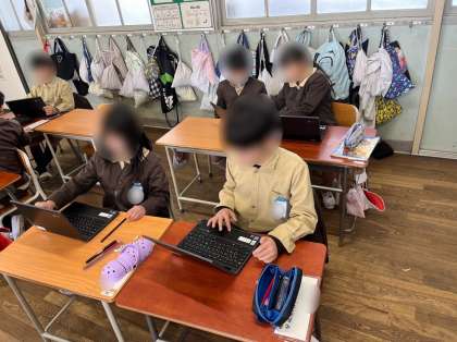 3年生は国語で「道具のうつりかわりを説明しよう」の学習をしています。学習端末を使って、自分が調べた道具のうつりかわりをプレゼンテーションにまとめていきました。