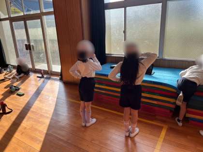 2年生は生活科の学習です。来週の参観に成長した自分の姿を見てもらいます。講堂では、いくつかのグループに分かれ、自分ができるようになったことを見てもらうために各々の特技を練習していました。