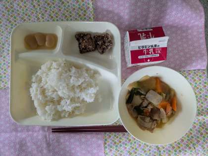 今日は、「くじらのたつたあげ」が出ました。給食では年に1回登場するので、1年生は初めて食べる人が多かったですが、おいしいと言って食べていました。日本の食文化の一つとして伝えていきたいですね。