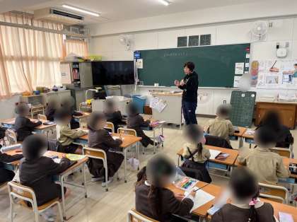 1年生は生活科の学習です。昨日のでんでんにこにこランドの活動をふり返りました。昔遊びをした感想を絵日記にかいていきました。