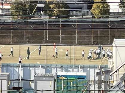 3年生は体育の学習です。校舎改築工事のため大きくグランドを使うときは校外グランドで体育をします。今日は的ヒットゲームをしました。グループでパスし回しながら的を狙うゲームをしました。