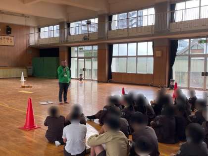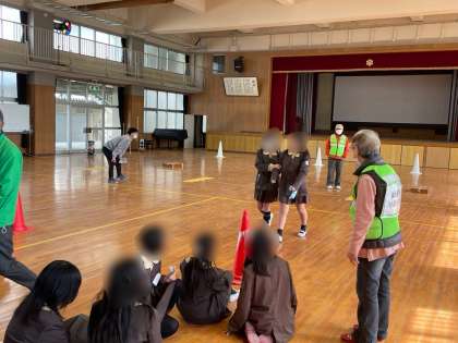 6年生は、此花区社会福祉協議会の方々に来ていただき、「アイマスク体験」をしました。アイマスクをして講堂内を歩いてみて、感じたことを交流しました。「方向がわからなくなって、まっすぐ歩けなかった。」や「段差があるのが怖くて不安だった。」等、自分自身で体験してみることで、感じられたことがたくさんあったようです。