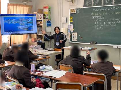 6年生は家庭科の学習です。「やってみよう 『地域の関わりプロジェクト』」と題して伝法の地域行事をふり返り、自分たちも参画できることがないか意見を交流しました。