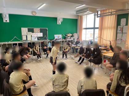 4、5年生は学級活動でおたのしみ会をしています。グループごとに計画した楽しい遊びをみんなで体験しました。