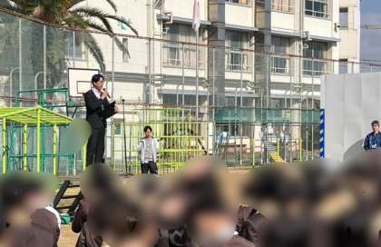 令和7年度最初の児童朝会を始める前に、1年生の子どもたちとの対面式を行いました。少し緊張した表情の1年生をみんなが温かく迎え入れました。これから少しずつ慣れて楽しい学校生活を送ってほしいと思います。