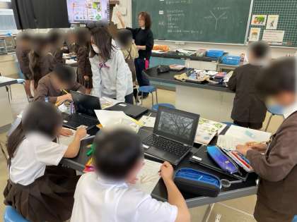 6年生は、「対称な図形」の学習でした。線対称な図形の性質について、対称の軸や構成要素に着目して考え、理解を深めました。
