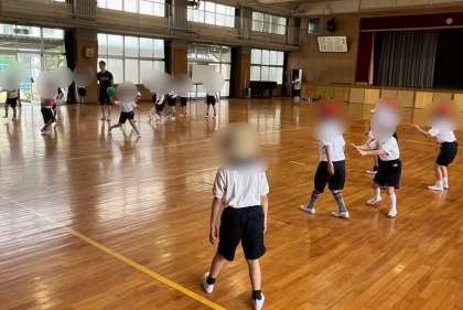 2年生は体育科の学習で、ドッジボールをしました。ボールが2球あったので、片方のボールに気を取られすぎると、もう一方のボールが思いもよらない方向から飛んできます。周りをよく見ながら楽しんで体を動かしていました。