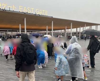 昼食後に予約していたパビリオンに入りました。その国の自然を最先端の技術を使って体験することができました。出口では国のマスコットキャラクターがお見送りしてくれます。どの学年も集合時間まで万博を楽しむことができました。帰りは雨が少し強くなってきましたが、先生の指示をよく聞いて行動することができました。