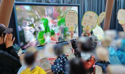 予約なしでも入れるパビリオン「クラゲ館」に行きました。動きをとらえて音を奏でる「角命」や、カードをモニターにかざすと、映像が出たり音が流れたりする「ごちゃまぜオーケストラ」を楽しみました。