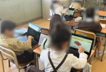 2年生は生活科で「育てる野菜を決めよう」の学習でした。一人一台端末を活用して育てたい野菜のイラストや写真を参考にカードを作っていました。