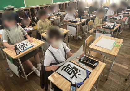 5年生は書写で「道」を書きました。しんにょうに気を付けて、お手本をしっかりと見ながら書き進めます。まずは自分で書いて、次に手本をなぞって、最後に清書を2枚仕上げました。