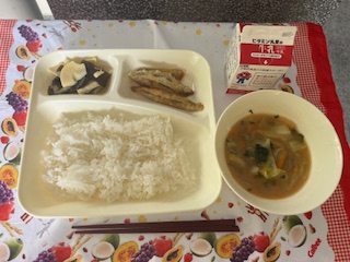 きびなごのてんぷらは、魚一匹丸ごと食べられるので、不足しがちなカルシウムを補給できます。人気のメニューで、ほとんどのクラスが完食していました。
