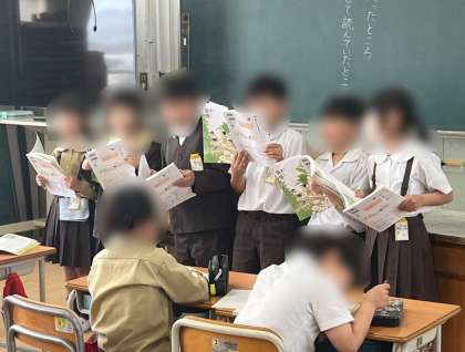 2年生は国語科の学習で「音読発表会」をしました。グループの発表を聞いて「いいと思ったところ」や「工夫して読んでいたところ」をノートに書きだしていました。