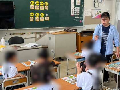 2年生は算数科の学習でした。「47−18」の答えの求め方について考えました。見通しで、一の位の引き算ができないことに気付き「十の位から数字を借りてくることで計算ができる」と予想を立てていました。