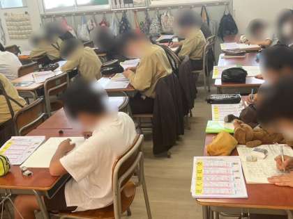 6年生は国語で漢字の学習をしました。漢字ドリルを見ながら、短文をノートに書いていきます。ゆっくりと丁寧にバランス良く書けるように集中して取り組んでいました。