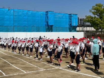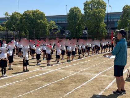 5月24日(土)の運動会に向けて、一回目の全体練習を校外グランドで行いました。今日は開会式の流れを中心に、一つひとつ確認していきました。天気も良く少し暑い中でしたが、集中して取り組みました。みんなで運動会を盛り上げていきましょう。