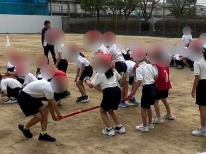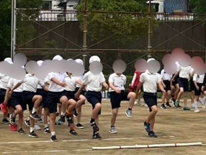 3・4年生の体育は校外グランドで運動会の団体競技を合同で練習しました。入場や退場の仕方、団体競技(台風の目)の練習等、本番に向けて一生懸命に取り組んでいました。